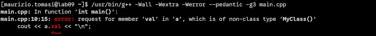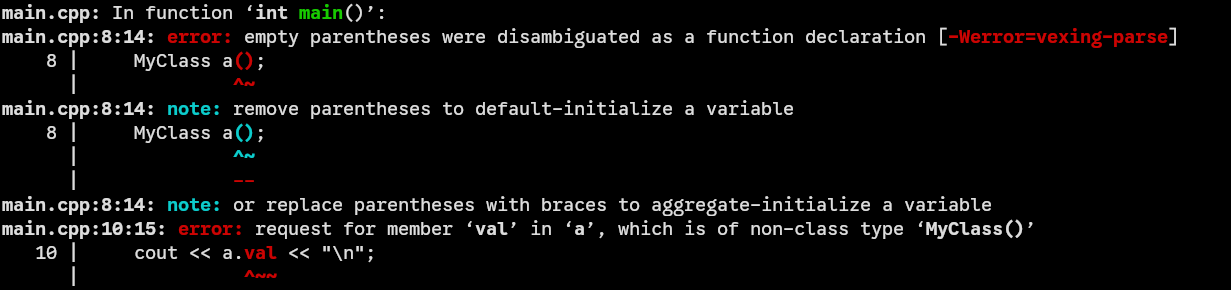 riga MyClass a(), che non voleva le parentesi